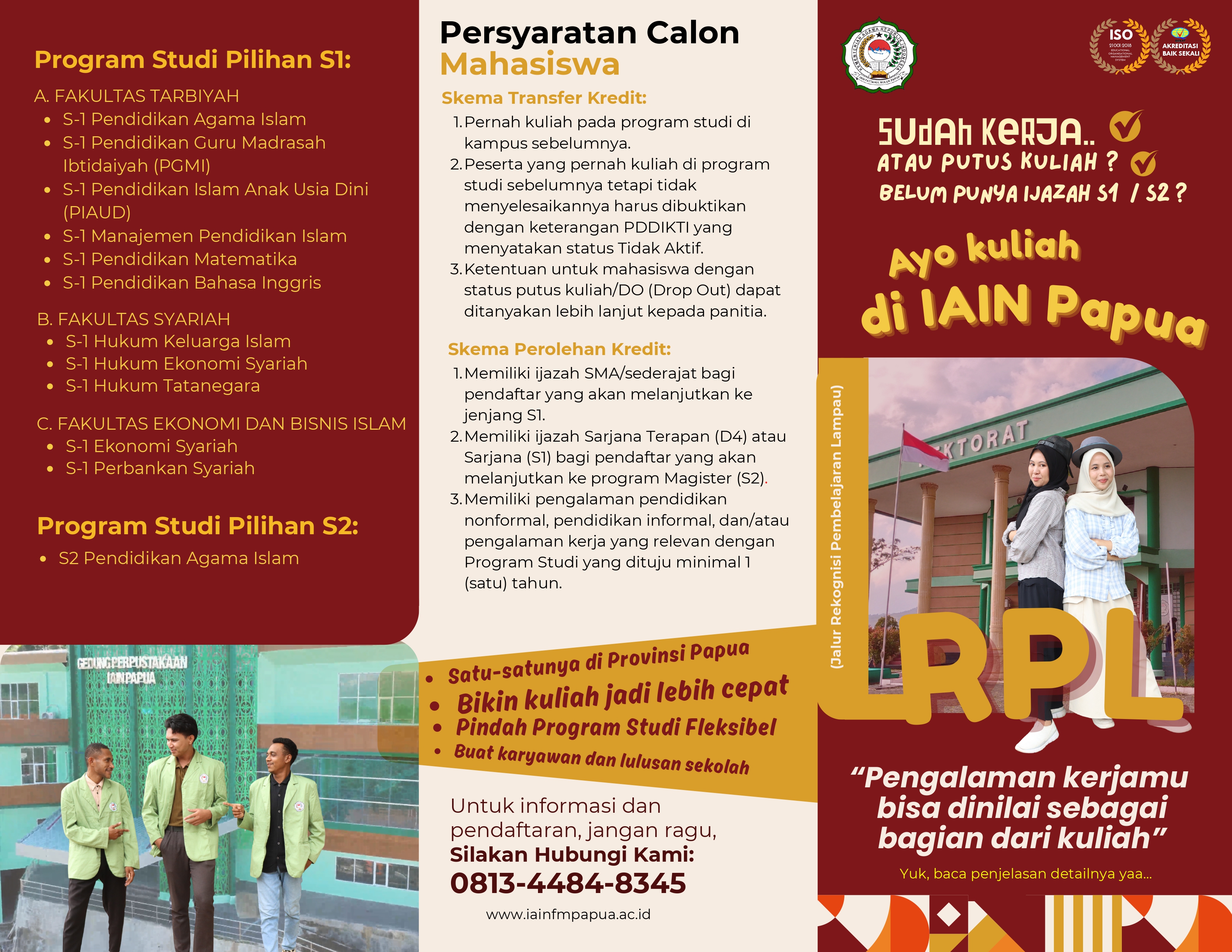 - Masa studi lebih cepat: S1 bisa selesai 1,5 tahun, S2 bisa selesai 1 tahun